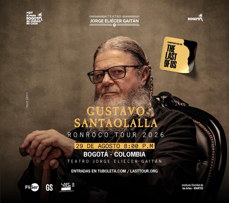 Gustavo Santaolalla vuelve a Colombia con un show íntimo y profundamente emotivo que recorre lo mejor de su trayectoria.Este 29 de agosto en el Teatro Jorge Eliécer Gaitán en Bogotá, el reconocido músico y compositor Gustavo Santaolalla presentará un viaje sonoro que conecta con la raíz, la memoria y la emoción.Una noche para sumergirse en obras icónicas como “Ronroco”, así como en las composiciones que lo llevaron a ganar 2 premios Óscar y a convertirse en una de las figuras más influyentes de la música contemporánea, extendiendo las fronteras de la latinidad.En este show Santaolalla propone una experiencia cercana, donde cada nota cuenta una historia. Un encuentro para sentir la música desde lo esencial, con toda la fuerza y sensibilidad de cada una de sus canciones.Los esperamos en este único show en Bogotá para vivir y conectar con la obra de un artista que ha marcado la historia de la música. -