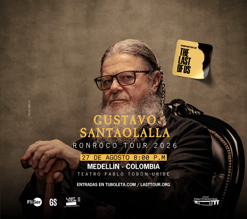 Gustavo Santaolalla vuelve a Colombia con un show íntimo y profundamente emotivo que recorre lo mejor de su trayectoria.Este 27 de agosto en el Teatro Pablo Tobón Uribe en Medellín, el reconocido músico y compositor Gustavo Santaolalla presentará un viaje sonoro que conecta con la raíz, la memoria y la emoción.Una noche para sumergirse en obras icónicas como “Ronroco”, así como en las composiciones que lo llevaron a ganar 2 premios Óscar y a convertirse en una de las figuras más influyentes de la música contemporánea, extendiendo las fronteras de la latinidad.En este show Santaolalla propone una experiencia cercana, donde cada nota cuenta una historia. Un encuentro para sentir la música desde lo esencial, con toda la fuerza y sensibilidad de cada una de sus canciones.Los esperamos en este único show en Medellín para vivir y conectar con la obra de un artista que ha marcado la historia de la música. -